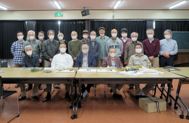 ○ 久しぶりの例会、集合写真撮影の時ズラリと並んだ完成機、モックを見て「よう並んだ、 彩雲会はこれでなくては・・」の声しきり。